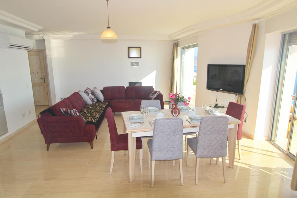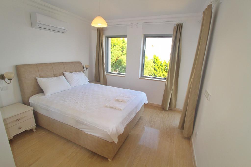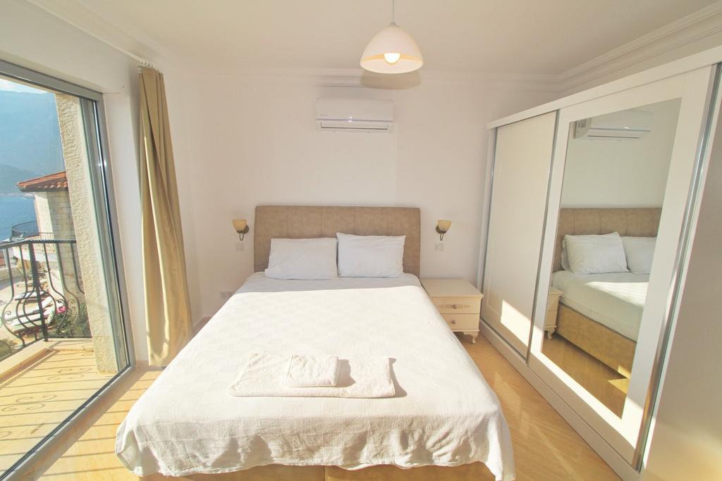 Das neu renovierte und klimatisierte Apartment verfügt über zwei Schlafzimmer mit Doppelbett, offener Wohnbereich mit Küche und ein modernes Badezimmer mit Duschkabine, WC, Waschbecken und Fön. Der Wohnbereich grenzt an die komplett ausgestattete Küche welche mit Herd/Backofen, Kühlschrank, Geschirrspüler, Waschmaschine, Wasserkocher und Kaffeemaschine keinen Wunsch offen lässt. Vom Balkon hat man einen herrlichen Blick auf Kas und die umliegenden Buchten. Im Garten sind Sitz- und Grillmöglichkeiten vorhanden.