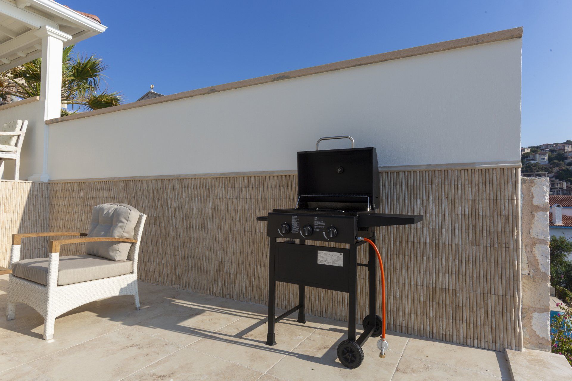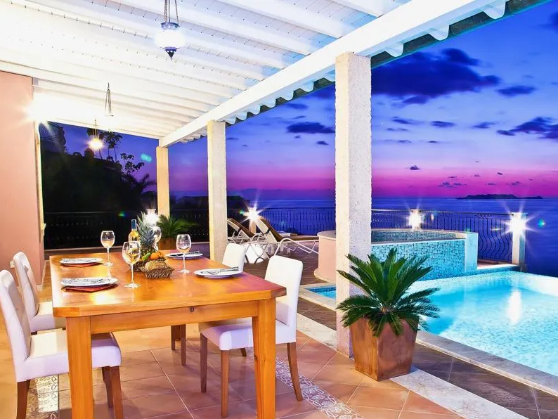 Mit 3 komfortablen Schlafzimmern bietet sie viel Platz für 6 Personen. Eines der Schlafzimmer ist zusätzlich mit einer Jakuzzi Badewanne ausgestattet. Vom großen Wohnzimmer erreicht man die Terrasse mit Pool. Von hier aus kann man die schönsten Sonnenuntergänge genießen. Die Schlafzimmer sind auf 2 Stockwerke verteilt und bieten teilweise direkten Meerblick. Die Villa verfügt über 2 geschmackvolle Badezimmer mit Dusche. Die voll ausgestattete Küche lädt zum Kochen ein. Hier stehen Ihnen u.a. Spülmaschine, Toaster, Backofen, Kühlschrank und Kaffeemaschine zur Verfügung. Damit Sie nicht zu viel Wäsche einpacken müssen, gibt es eine Waschmaschine sowie Bügeleisen. Vom Außenpool hat man einen herrlichen Blick auf’s nahe Meer. Liegen und Sonnenschirme laden zum Verweilen ein. Ein Grill lädt zu gemütlichen Grillabenden auf der Terrasse ein. Ein Parkplatz befindet sich direkt vor der Tür. Internet steht selbstverständlich jederzeit zur Verfügung. Der nächste Strand ist ca. 4 km entfernt.