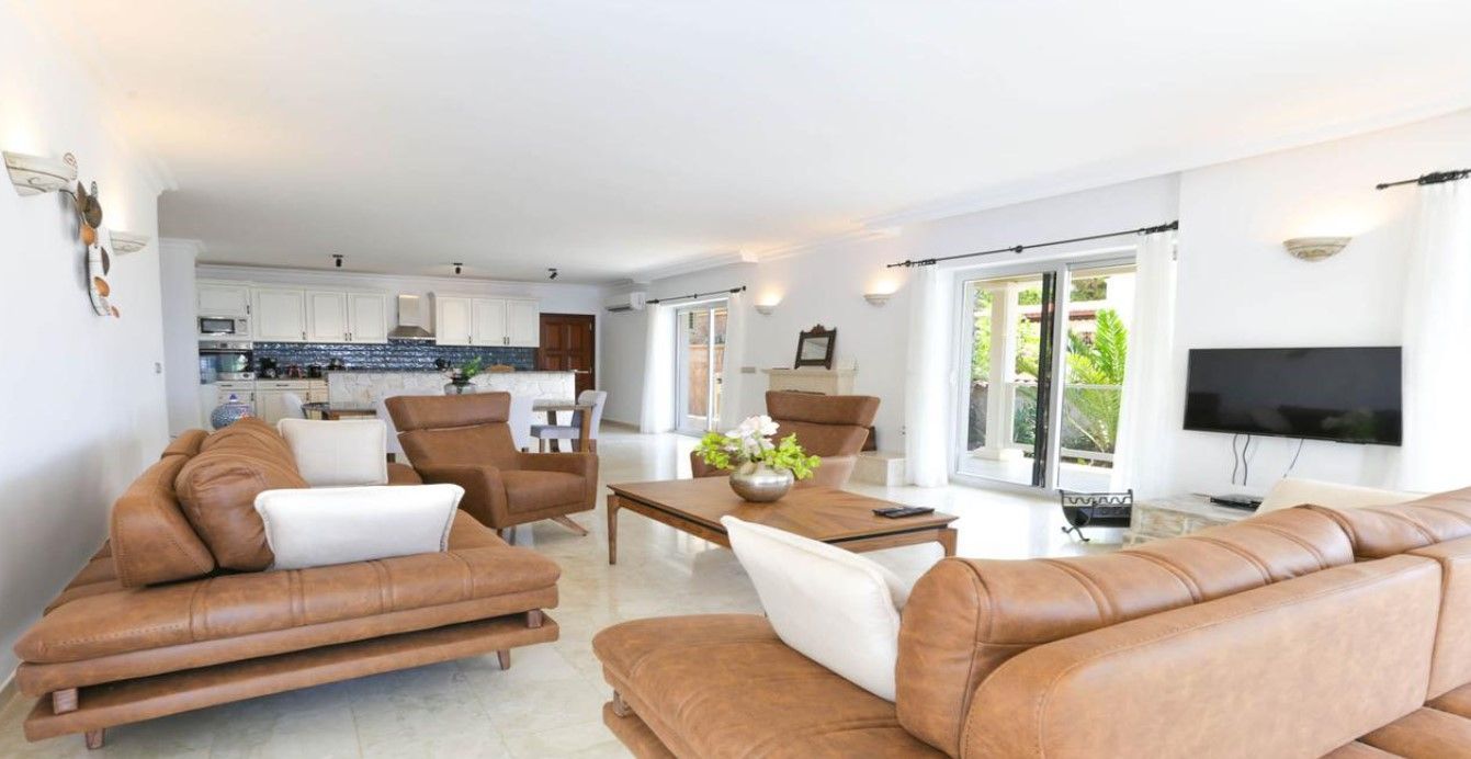 Die komfortable Villa liegt auf der Halbinsel von Kas und bietet mit 3 Schlafzimmern Platz für 8 Personen mit 4 hellen Schlafzimmern (3 Zimmer mit Doppelbett und 1 Zimmer mit Einzelbetten) und vier Badezimmern mit Dusche, WC und Waschbecken sowie Fön. Die voll ausgestattete Küche im amerikanischen Stil lässt keine Wünsche offen. Das große Wohnzimmer mit Flachbildfernseher lädt zu gemütlichen Abenden ein. Vom Wohnzimmer aus gelangt man auf die große Terrasse mit Pool. Die Terrasse ist mit Sitzgelegenheiten und Grill ausgestattet. Am Pool laden Liegen, Hängematten und Schirme zum Verweilen ein.