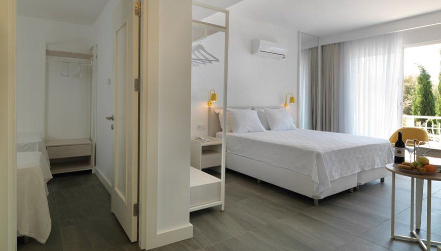 Das familiäre Hotel liegt direkt am bekannten kleinen Kiesstrand und nicht weit vom Zentrum entfernt. Die hellen und komfortablen Zimmer sind mit Klimaanlage, TV, Telefon, Wifi und geräumigem Badezimmer mit Duschkabine, WC und Fön ausgestattet. Vom Balkon kann man einen herrlichen Meerblick auf die umliegenden Inseln und Buchten genießen.