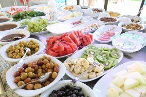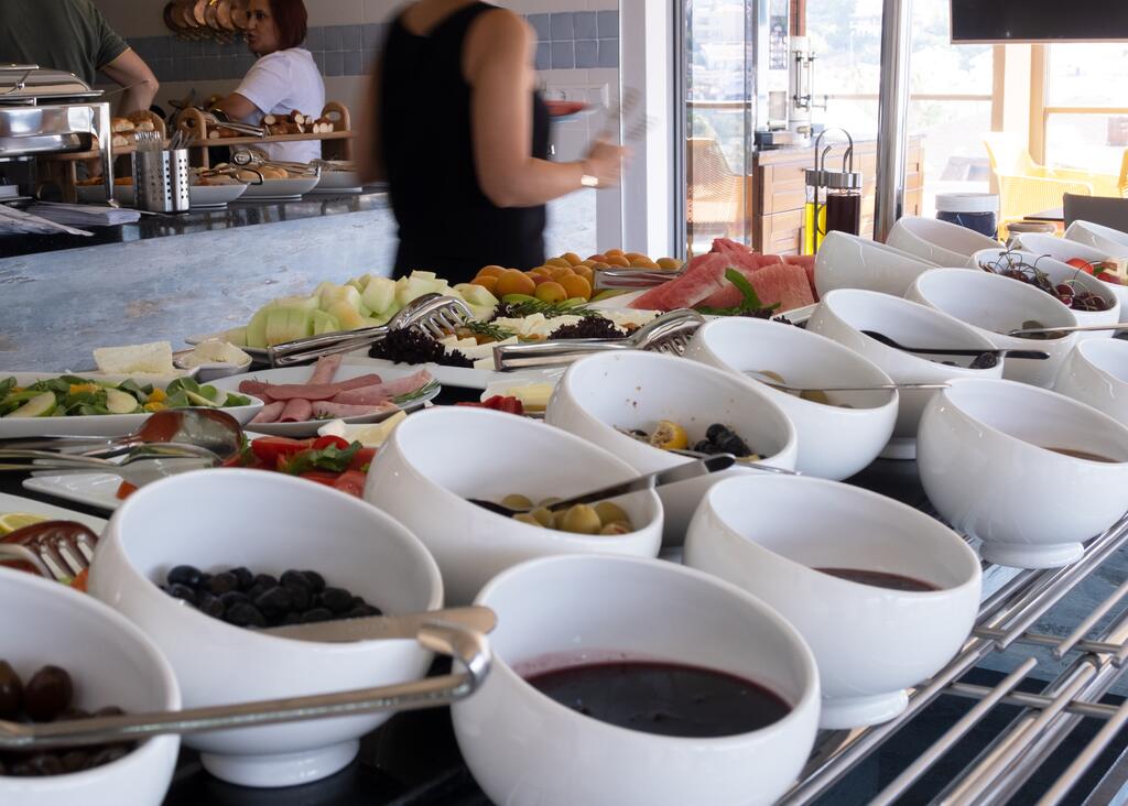 Das reichhaltige Frühstück wird mit Blick auf die griech. Insel Meis - Castellorizon- serviert.