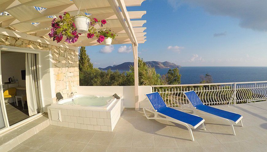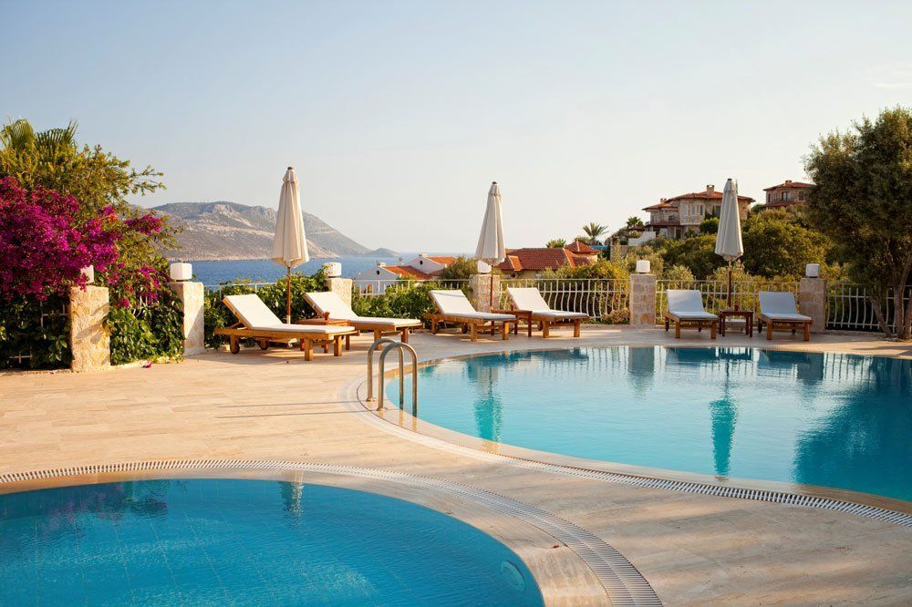 Das Hotel wurde 2019 eröffnet und liegt oberhalb von Kas mit herrlichem Blick auf den Hafen und die umliegenden Inseln und Buchten.