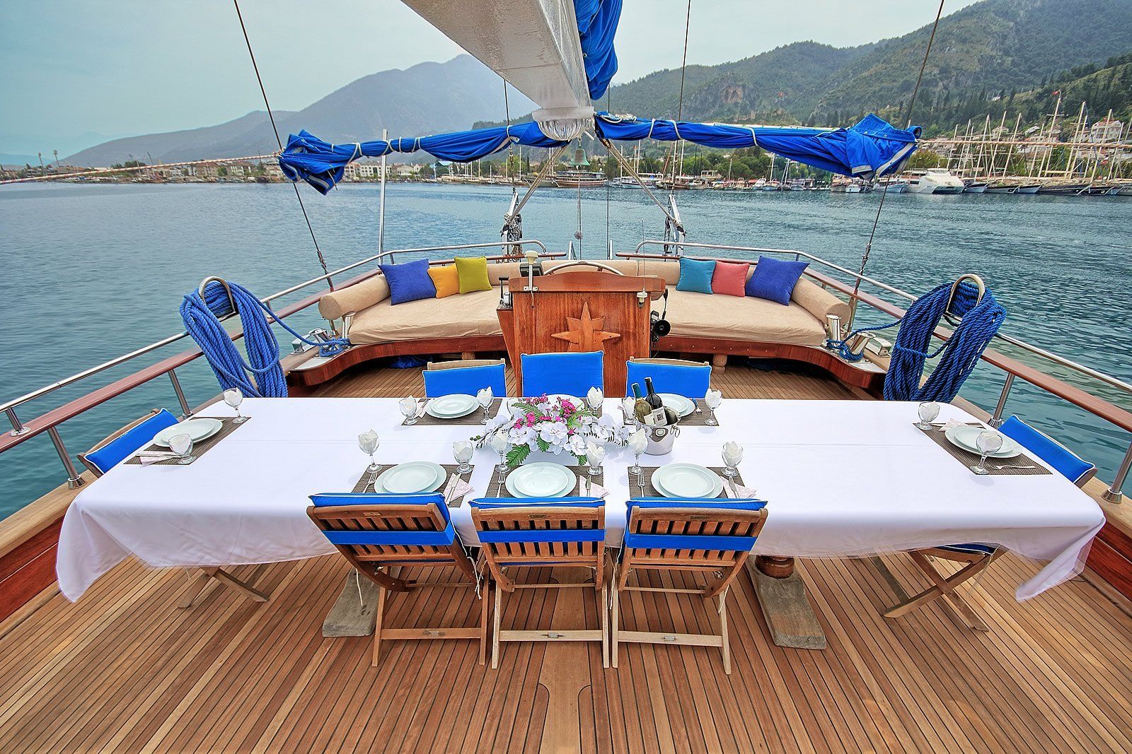 Unsere Yachten bieten viel Komfort und Platz für Privatsphäre. Alle Yachten verfügen über Kabinen mit einem separaten kleinen Bad. Die gemeinsamen Mahlzeiten werden am Hinterdeck eingenommen. Für Entspannung und herrliche Sonnenuntergänge steht jeweils ein großes Sonnendeck - teilweise mit separatem Sitzbereich - zur Verfügung.