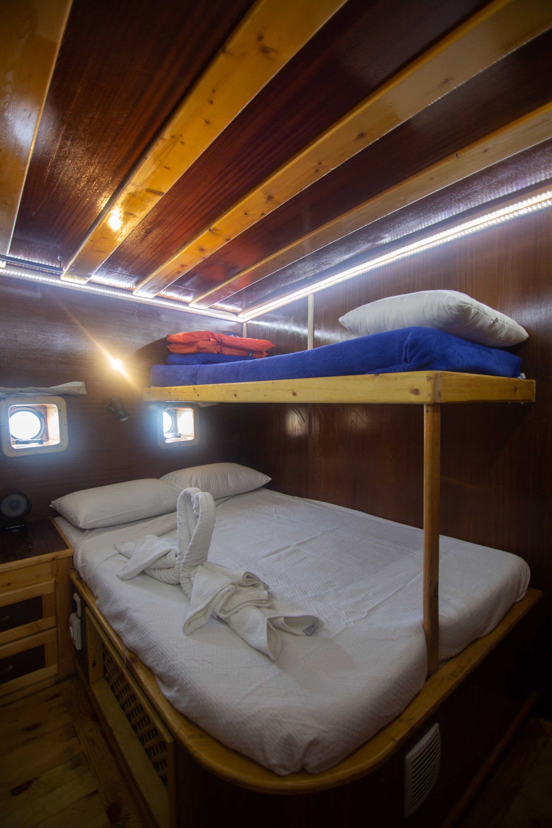 - 2 klimatisierte Kabinen verfügen zusätzlich über ein Zusatzbett (z.B. für ein Kind) Badezimmer mit Dusche, WC